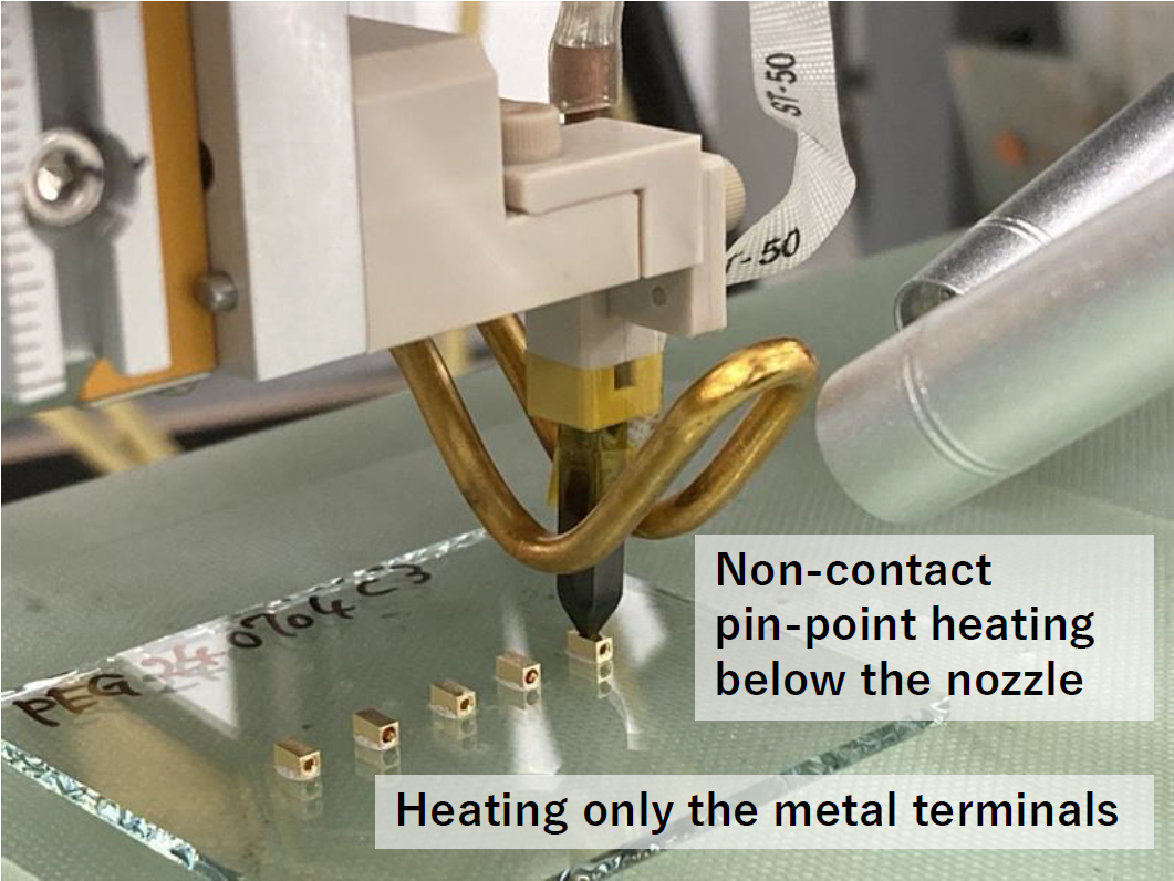 - Instantaneous heating (~10 sec.) minimizes thermal damage, enabling mounting on low heat-resistant and high heat-dissipation substrates