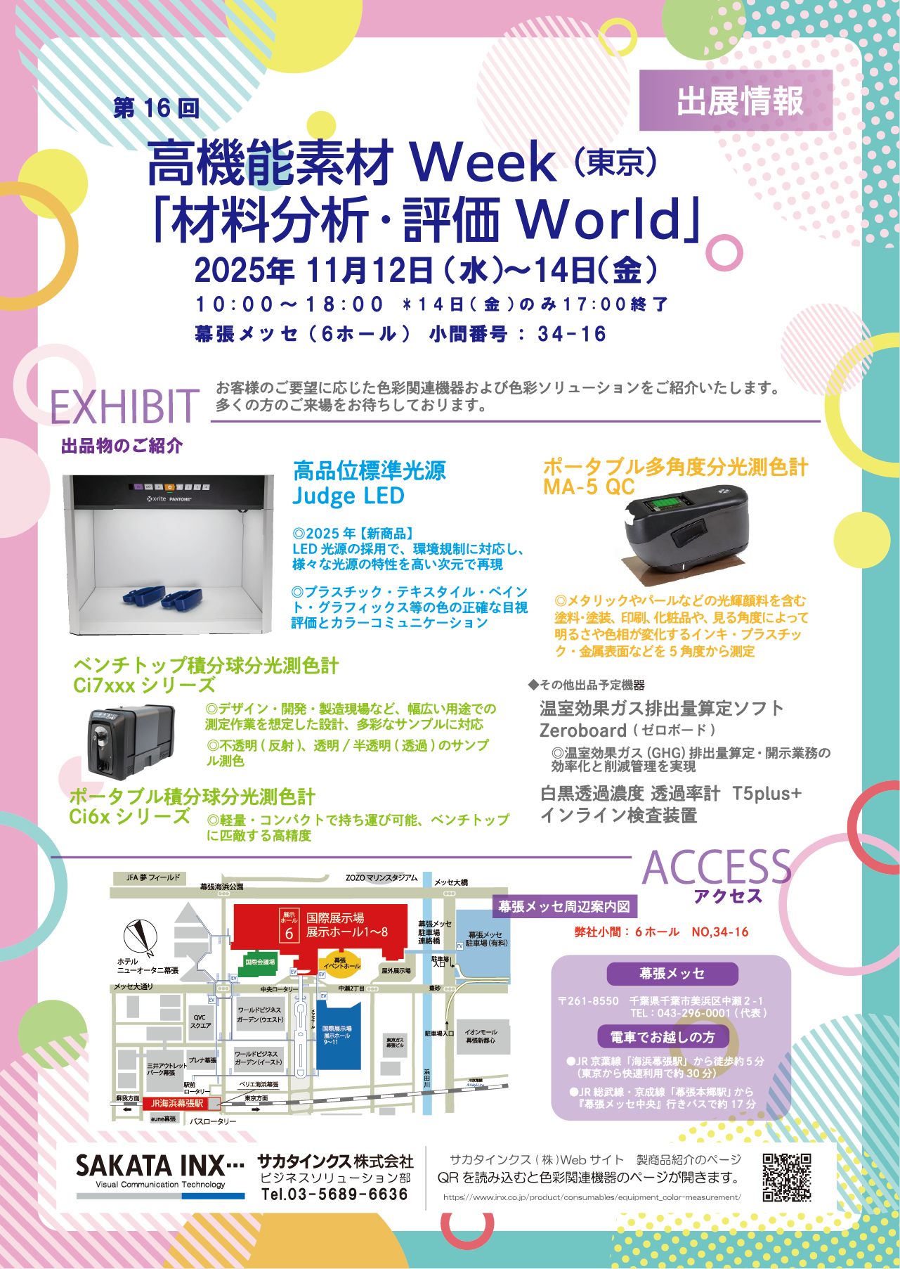 ※「材料分析・評価 World」の入場券で、幕張メッセで同時開催中の展示会「高機能フィルム展」「高機能プラスチック展」「サステナブルマテリアル展」他に入場可能です。